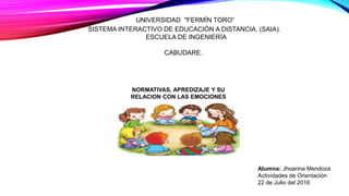 El documento discute el aprendizaje, las emociones y su relación. Explica que el aprendizaje es el proceso de adquirir nuevos conocimientos a través del estudio y la experiencia. También describe las emociones humanas como alegría, tristeza, miedo, entre otras. Finalmente, señala que las emociones juegan un papel importante en el aprendizaje al afectar la motivación, perseverancia y manejo de dificultades a lo largo del proceso de aprendizaje.