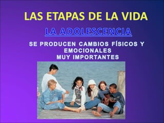 El documento describe las diferentes etapas de la vida humana, incluyendo la infancia, la adolescencia, la juventud, la madurez y la vejez. Cada etapa se caracteriza por cambios físicos, emocionales y de desarrollo. La infancia comprende desde el nacimiento hasta los 12 años y está dividida en bebé y niñez. La adolescencia comienza entre los 12-15 años y se caracteriza por la pubertad. La juventud abarca desde los 18 a los 25 años cuando se deja de crecer. La madurez ocurre