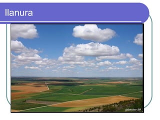 Este documento describe diferentes formas de relieve geográfico como llanuras, mesetas, montañas, valles, cabos, penínsulas, golfos, islas, archipiélagos, rías, y relieve costero y submarino. Proporciona ejemplos específicos de cada forma de relieve como los Picos de Europa, el Valle de Cabuérniga, la Punta del Dichoso, la isla de Suances, y la Ría de San Martín de la Arena.