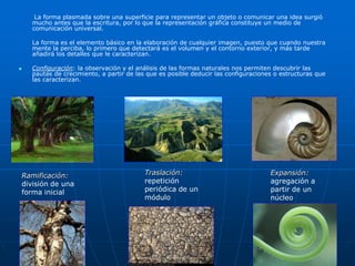 Este documento presenta un análisis y representación de formas planas. Explica que la forma es un elemento básico en la elaboración de imágenes y describe diferentes clases, representaciones y análisis de formas. También cubre conceptos geométricos como polígonos regulares e irregulares, y métodos para construir polígonos regulares dados un lado o circunferencia.