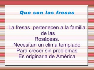 Las fresas pertenecen a la familia Rosáceas y son originarias de América. Son ricas en fibra, hierro, sodio, magnesio, calcio y otros minerales que ayudan a mantener un sistema digestivo saludable y reducen el riesgo de enfermedades del corazón y cáncer. Debido a sus propiedades, las fresas sirven para mantenerse joven y en forma, especialmente si se disfrutan en un batido en los días de verano.