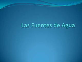 Este documento trata sobre tres temas relacionados con el medio ambiente: 1) Las fuentes de agua como manantiales y aguas termales que brotan de la tierra, 2) La contaminación como la introducción de sustancias o energía dañinas a ecosistemas y seres vivos, y 3) El calentamiento global como el aumento de la temperatura promedio de la atmósfera y océanos desde mediados del siglo XX.