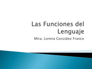 El documento describe las diferentes funciones del lenguaje según Roman Jakobson. Identifica seis funciones básicas del lenguaje: referencial, expresiva, apelativa, fática, metalingüística y poética. Explica brevemente cada función y proporciona ejemplos para ilustrar su uso.