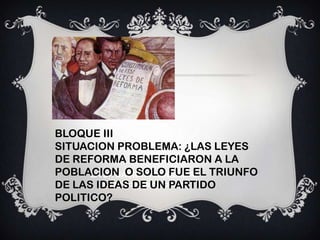 Las leyes de reforma de 1857 en México tuvieron como objetivo establecer un gobierno secular y democrático, pero también generaron un conflicto entre los liberales y conservadores. La constitución de 1857 y las leyes de reforma separaron la iglesia del estado y establecieron la libertad de culto, pero también llevaron a la guerra de reforma entre facciones liberales y conservadoras sobre estas políticas.