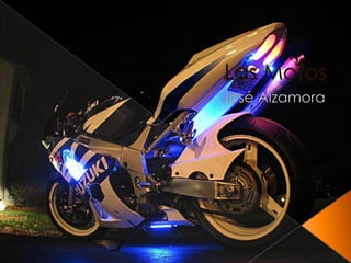 El documento resume la historia de la motocicleta desde su origen con el motor de cuatro tiempos inventado por Nikolaus Otto hasta las primeras motocicletas fabricadas en serie por Hildebrand y Wolfmüller en 1894. También describe las diferentes disciplinas y tipos de motocicletas como el motocross, enduro, deportivas, scooter, trail y trial.