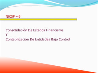 Este documento trata sobre la adopción e implementación de las Normas Internacionales de Contabilidad para el Sector Público (NICSP) en República Dominicana. Explica que la Dirección General de Contabilidad Gubernamental está trabajando en proyectos para armonizar el marco legal contable del país con las NICSP y actualizar el Plan de Cuentas Único de acuerdo a estas normas. También busca implementar el método de devengado de ingresos en entidades recaudadoras durante el 2016.