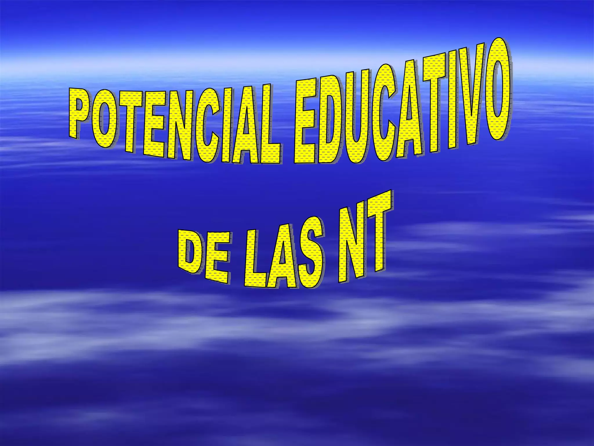 Este documento describe el potencial educativo de las nuevas tecnologías (NT) y el papel del educador con respecto a su uso. Explica que las NT incluyen herramientas como la computación y la comunicación y que su creación se debe a avances en electrónica, computación y telecomunicaciones. Además, señala que las tareas del educador con las NT pueden resumirse en tres escalones: creación de materiales educativos, su aplicación educativa y el conocimiento y análisis crítico de las NT.