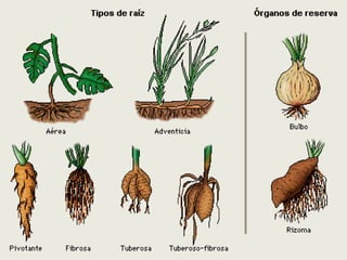 - Las plantas tienen órganos como raíces, tallos y hojas que cumplen funciones importantes como la absorción de agua y nutrientes, transporte y producción de alimento. Algunas plantas también tienen flores