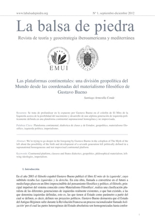 Este documento resume las principales ideas de Gustavo Bueno sobre las diferentes generaciones de izquierdas políticamente definidas y la posibilidad de una séptima generación de izquierda definida en una plataforma continental supranacional homogénea. Bueno clasifica seis generaciones de izquierdas definidas que se han sucedido históricamente y propone que una futura séptima generación requeriría una plataforma continental unida cultural y lingüísticamente para tener éxito.