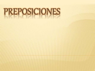 El documento aborda las preposiciones en español, clasificándolas en propias e impropias y explicando su función como enlaces dentro de oraciones. Se describen diferentes tipos de preposiciones según su uso, como las de lugar, tiempo, posesión y causa, junto con ejemplos ilustrativos. Además, se mencionan casos de contracciones con artículos y otros usos específicos en oraciones cotidianas.