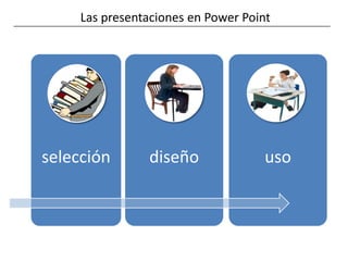 Las presentaciones en PowerPoint son herramientas efectivas para mejorar la atención y comprensión en el aula, permitiendo la integración de diversos medios y facilitando el aprendizaje colaborativo. Se destacan aspectos como el diseño, la organización y la metodología, incluyendo el estilo Pecha Kucha, que enfatiza la brevedad y la precisión en la información. Para maximizar su efectividad, es fundamental considerar factores como la legibilidad, el uso adecuado de imágenes y la sincronización con la voz del presentador.