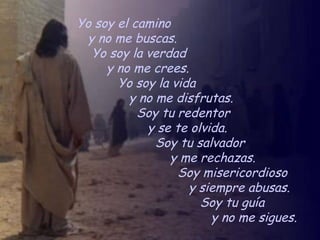 Jesús expresa su frustración por la falta de fe, amor y obediencia de la humanidad a pesar de todo lo que ha hecho por ellos. Les recuerda que él es el camino, la verdad y la vida, pero no lo buscan, creen o disfrutan. A pesar de perdonarlos y ayudarlos constantemente, la humanidad se olvida de él, lo desobedece y lo ofende. Jesús pregunta qué más puede hacer por la humanidad.