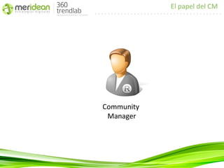 Este documento describe el papel del Community Manager y las principales funciones que incluyen escuchar a la comunidad, explicar la posición de la empresa, buscar líderes de opinión y encontrar formas de colaboración. También se enfoca en la importancia de monitorear las conversaciones en línea mediante el uso de herramientas gratuitas y de pago para medir tendencias, analizar el sentimiento y generar informes. El análisis de tendencias es clave para comprender a los consumidores y aplicar los hallazgos a la estrategia de la mar