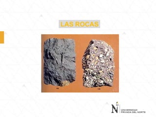 Las rocas se forman a partir de minerales o restos de seres vivos consolidados bajo procesos geológicos. Existen tres tipos principales de rocas: sedimentarias, formadas por la acumulación y cementación de sedimentos; ígneas o magmáticas, formadas por la solidificación de magma; y metamórficas, formadas por la transformación de otras rocas bajo altas presiones y temperaturas. Algunas rocas como la caliza, el carbón y el granito tienen gran importancia económica e industrial.