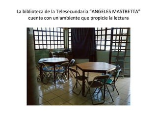 El documento aborda el problema de la baja comprensión lectora en la telesecundaria 'Donato Bravo Izquierdo', donde los alumnos no leen adecuadamente. Se propone un proyecto para fomentar el placer por la lectura y mejorar la calidad de vida de los estudiantes. La biblioteca de la telesecundaria 'Ángeles Mastretta' se considera un espacio clave para estas actividades, con la participación de padres y maestros en el proceso lector.