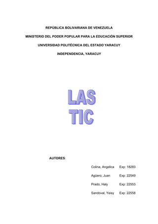 Este documento presenta un resumen del concepto de Tecnologías de la Información y la Comunicación (TIC) y discute sus posibilidades educativas. Explica que las TIC permiten la adquisición, producción, almacenamiento, tratamiento, comunicación, registro y presentación de información. También destaca que las TIC pueden mejorar la calidad de la educación al facilitar nuevos contenidos, métodos y herramientas de aprendizaje. Finalmente, enfatiza la importancia de capacitar a los docentes en el uso de las TIC para explot