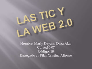 Este documento presenta información sobre las tecnologías de la información y la comunicación (TIC). Brevemente describe algunas de sus funciones principales como el almacenamiento, procesamiento y transmisión de datos, así como también presenta algunas de sus ventajas y desventajas. Finalmente, incluye gráficos que muestran la evolución del uso de las TIC a través del tiempo.
