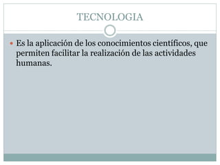 El documento describe cómo el actual proceso de digitalización en el mundo ha permitido el desarrollo humano a través de la innovación en la sociedad, la economía y otros ámbitos. Explica brevemente conceptos como tecnología, información y comunicación, y define las TIC como el conjunto de avances tecnológicos relacionados con la informática, las telecomunicaciones y las herramientas audiovisuales que facilitan la información y la comunicación a través de computadoras e Internet.