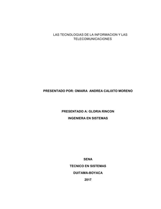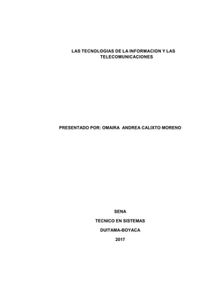 Este documento presenta información sobre las tecnologías de la información y las comunicaciones (TIC). Explica conceptos clave como las TIC, las NTIC, la Web 2.0 y 3.0. También cubre temas como el derecho de autor, el uso de software libre en la educación, las TIC en Colombia y los tipos de delitos informáticos. Finalmente, define qué es una página web y sus características principales.