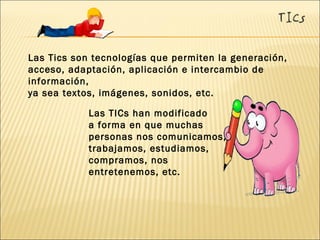 Las tecnologías de la información y comunicación (TIC) permiten generar, acceder, adaptar, aplicar e intercambiar información en diferentes formatos como texto, imágenes y sonido. Las TIC han modificado la forma en que las personas se comunican, trabajan, estudian y se entretienen. Las TIC se usan como herramientas de apoyo para el aprendizaje y la enseñanza a distancia, por ejemplo a través de cursos en línea e Internet. Cuando las TIC se integran pedagógicamente en el proceso de aprendizaje