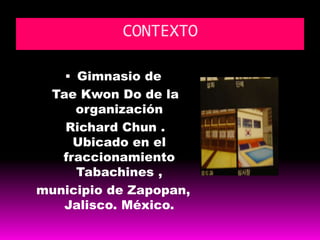 Este documento describe un proyecto innovador para enseñar y perfeccionar las formas de Tae Kwon Do utilizando TIC. Los alumnos aprenderán viendo un video interactivo y serán evaluados por sus compañeros en línea. El proyecto comenzará el 26 de diciembre de 2012 e involucrará el uso de YouTube, Facebook y una herramienta de votación para que los alumnos evalúen las formas de sus compañeros.