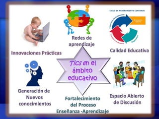 Este documento define las Tecnologías de la Información y la Comunicación (TIC's) como equipos, programas informáticos y medios de comunicación que permiten reunir, almacenar, procesar, transmitir e intercambiar información. Explica las características de las TIC's como la interactividad, digitalización e interconexión y sus componentes principales como la informática, multimedia y telecomunicaciones. También discute las ventajas y desventajas del uso de las TIC's para el aprendizaje de estudiantes y profes