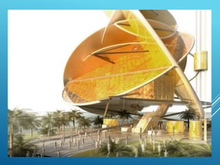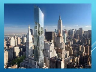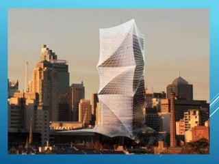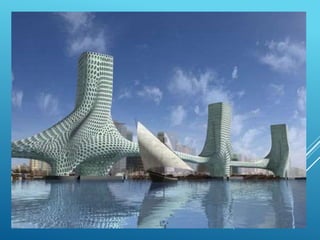 El documento presenta una serie de proyectos arquitectónicos innovadores de nuevos arquitectos, destacando el uso de técnicas avanzadas. Se mencionan estructuras icónicas y contemporáneas en diversas ciudades del mundo, como Singapur, Dubai, Nueva York y China. La obra resalta la evolución del diseño arquitectónico hacia enfoques más sostenibles y visualmente impactantes.
