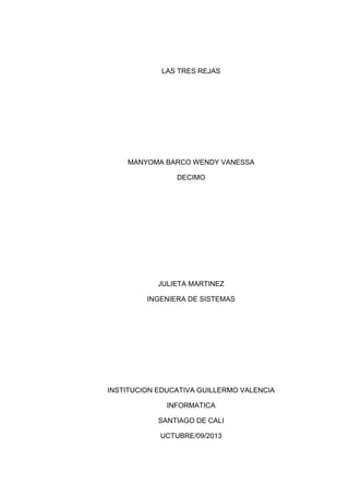 Este documento resume la historia de "Las Tres Rejas", la cual enseña que antes de repetir algo sobre otra persona debemos asegurarnos de que sea verdad, bueno y necesario. La historia cuenta sobre un discípulo que le cuenta a su maestro algo negativo que escuchó sobre él, pero el maestro le dice que primero debe pasarlo por "las tres rejas": la verdad, la bondad y la necesidad. Si no pasa por estas tres pruebas, es mejor no repetirlo. El documento concluye que practicar esta regla mejoraría las rel