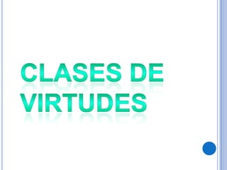 El documento describe las virtudes como cualidades que permiten tomar decisiones correctas y comportarse bien en toda circunstancia. Menciona que las virtudes son el patrimonio moral del hombre y ayudan a ser bueno en el sentido más verdadero. Además, explica que las virtudes se adquieren a través del tiempo y las enseñanzas si se es bueno y se obra bien, no por el camino del mal o el vicio.