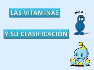 Las vitaminas son sustancias orgánicas esenciales para el metabolismo y el buen funcionamiento del cuerpo. Se clasifican en liposolubles (A, D, E, K) y hidrosolubles (complejo B y C). Son necesarias para procesos como el crecimiento, la reparación de tejidos y la prevención de enfermedades. Se encuentran de forma natural en alimentos como frutas, verduras, carnes y lácteos.