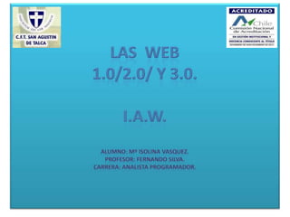 La Web 1.0 permitía solo lectura de contenidos subidos por los administradores de sitios web. La Web 2.0 introdujo la participación de los usuarios para crear y compartir contenidos a través de blogs, wikis y redes sociales. Se propone que la Web 3.0 use la inteligencia artificial y el procesamiento semántico de contenidos para mejorar la búsqueda y accesibilidad de la información en la web. Sin embargo, dotar de significado semántico a todos los contenidos web sería un proceso largo y costoso.