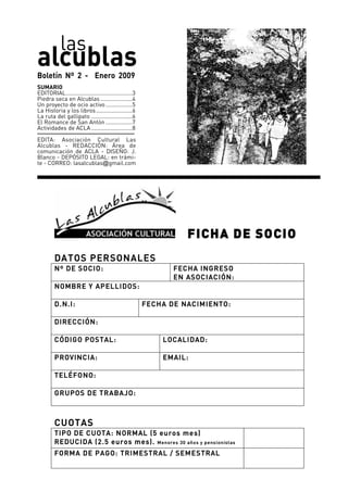 Este boletín de la Asociación Cultural Las Alcublas (ACLA) presenta las actividades programadas para su segundo año, incluyendo excursiones, proyectos para catalogar y restaurar construcciones de piedra seca, y la creación de rutas de senderismo para promover un estilo de vida más saludable y el turismo activo en la localidad de Alcublas.