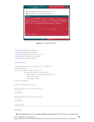 Este documento presenta una introducción a LaTeX. Explica que LaTeX es un conjunto de macros para TeX que permite componer documentos de manera automática y con un alto nivel de calidad tipográfica. Describe brevemente las distribuciones TeX/LaTeX y editores, y ofrece un ejemplo básico de código LaTeX que incluye texto normal y matemático.