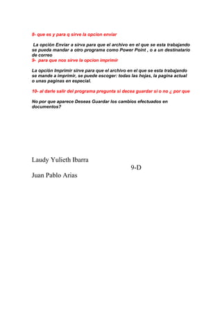 Las herramientas de menú archivo en Word incluyen opciones como Nuevo, Abrir, Guardar, Guardar como, Configurar página, Abrir, Propiedades y Salir. La opción Nuevo se utiliza para crear un nuevo documento, mientras que Abrir y Guardar permiten abrir y guardar archivos respectivamente. Configurar página permite editar el tamaño y orientación de la página, y Propiedades muestra detalles sobre el archivo. Al salir del programa, Word pregunta si se desean guardar los cambios para evitar la pérdida