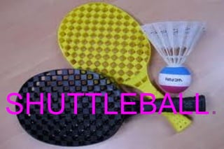 El Shuttleball es un juego con raqueta donde se golpea una pelota grande contra una pared o a otro jugador. Se puede jugar de forma recreativa o competitiva siguiendo reglas como en el bádminton. La Lacrosse es un deporte originado por tribus nativas americanas que involucra lanzar una bola pequeña usando un palo con red. Ambos documentos describen el origen, reglas y equipamiento de estos juegos alternativos.