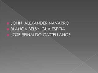 El documento lista tres nombres: John Alexander Navarro, Blanca Belsy Igua Espitia y Jose Reinaldo Castellanos.