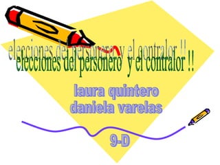 El documento habla sobre el personero y el contralor de una institución educativa. Explica que el personero debe defender los derechos de los estudiantes y cumplir con sus promesas, mientras que el contralor es responsable de garantizar que el dinero de la institución se gaste correctamente y en las necesidades adecuadas. Ambos roles deben mantener informados a los estudiantes y asegurarse de que cumplen con sus deberes.