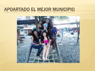 El documento habla sobre Apartadó, un municipio en Antioquia, Colombia. Menciona que Apartadó es el mejor municipio y que el Parque del Ortiz en Apartadó es muy divertido.