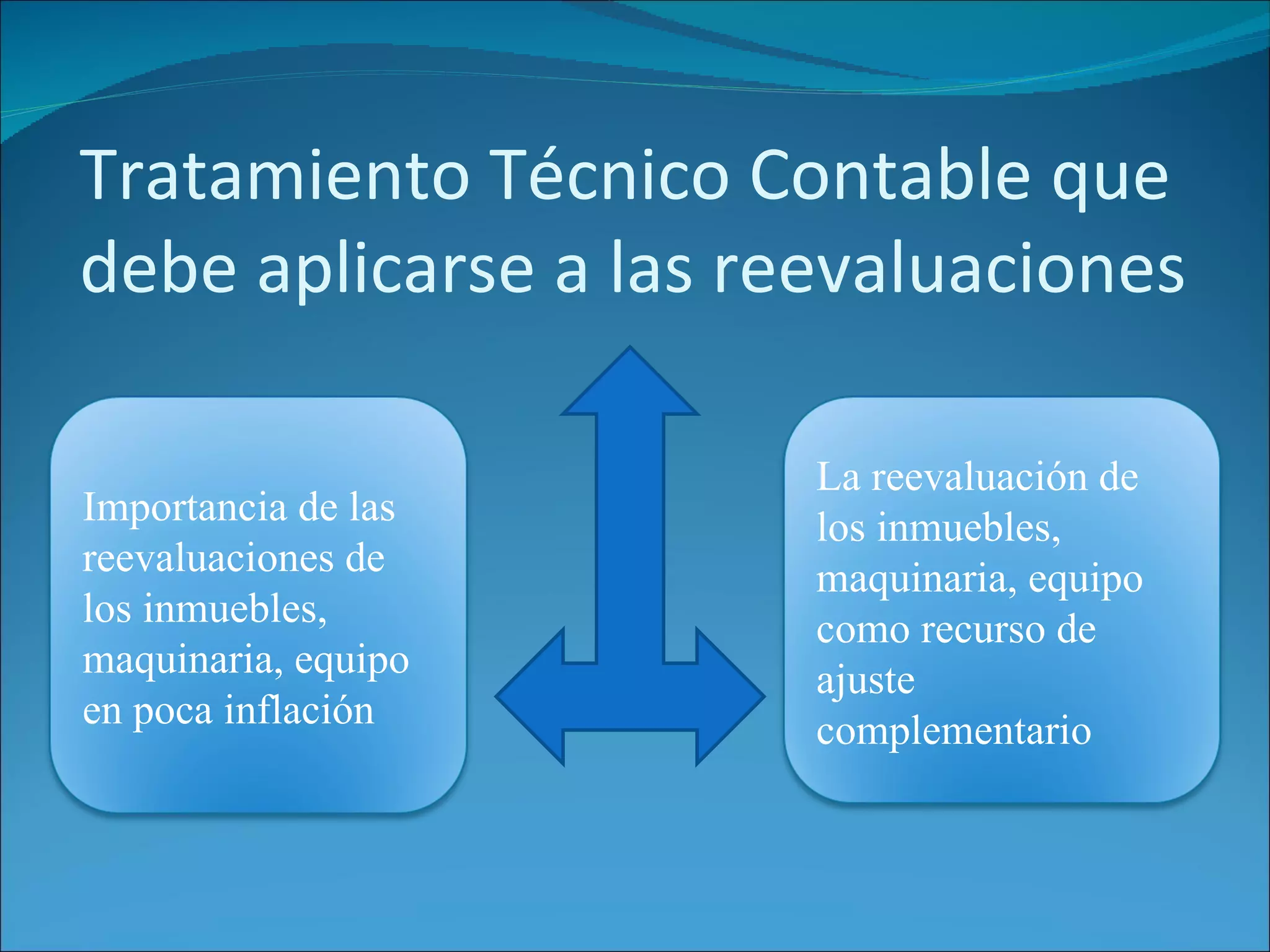 El documento habla sobre los tratamientos técnicos contables que se deben aplicar a las reevaluaciones de inmuebles, maquinaria y equipo. Explica las ventajas y desventajas de la contabilidad a costo histórico versus el costo de reposición. También presenta un cuadro comparativo de los valores de costo histórico y reposición de los bienes de una empresa entre 1977-1981 y resume los tipos de métodos para realizar reevaluaciones, incluyendo el método de ajuste por índice de precios y el método de reevalu