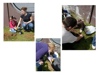El documento describe los preparativos y la plantación de laureles en un evento especial para conmemorar el 50 aniversario de una escuela. Los miembros de la asociación local hicieron los hoyos y ayudaron a plantar los árboles. Los estudiantes y profesores recogieron piedras especiales para marcar los lugares de plantación y decoraron invitaciones para las familias. En el día de la plantación, estudiantes, profesores y familias plantaron los laureles y otros árboles como parte de las celebraciones del aniversario con la