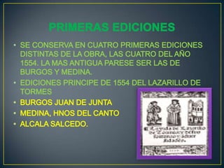 El documento habla sobre una publicación de 1555 en Amberes que contiene episodios que aluden a personajes y circunstancias de la vida española de la época. El autor era posiblemente un español establecido en Flandes y se desconoce su identidad.