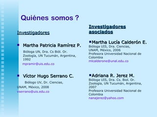 Este documento presenta el Laboratorio de Biología Reproductiva de Vertebrados y la Colección Herpetológica de la Escuela de Biología de la Universidad Industrial de Santander. Describe a los investigadores principales y asociados del laboratorio, sus líneas de investigación en biología reproductiva, biología del desarrollo, ecología e historia natural y diversidad sistemática y biogeografía. También resume cuatro proyectos de investigación en curso del laboratorio sobre la sistemática filogenética de lagartijas del género Mabu