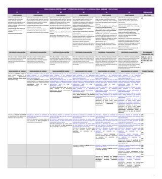El documento describe los contenidos y criterios de evaluación para el área de lengua castellana y literatura en primaria, centrándose en el bloque 1 sobre la lengua oral. A lo largo de los cursos, se espera que los estudiantes mejoren sus habilidades de comunicación oral participando en diferentes tipos de interacciones y situaciones, respetando las normas de cortesía, escuchando atentamente, y expresando sus ideas de manera ordenada y respetuosa.