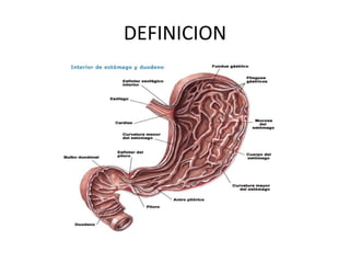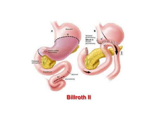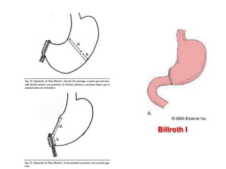 El documento trata sobre la úlcera péptica, abordando su definición, epidemiología, etiología, diagnóstico, tratamiento médico y quirúrgico, así como sus complicaciones. Se menciona la importancia de Helicobacter pylori en la patología y se detallan diversas técnicas quirúrgicas para el manejo de la enfermedad. También se discuten factores relacionados con la prognosis y la prevención de úlceras pépticas.