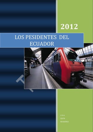 Este documento presenta breves biografías de los primeros 11 presidentes constitucionales de Ecuador desde Xavier Espinoza en 1868 hasta Gabriel García Moreno en 1875. Incluye información sobre sus períodos de gobierno, obras importantes y algunos de los conflictos territoriales que enfrentó Ecuador durante ese tiempo, especialmente con Colombia y Perú.