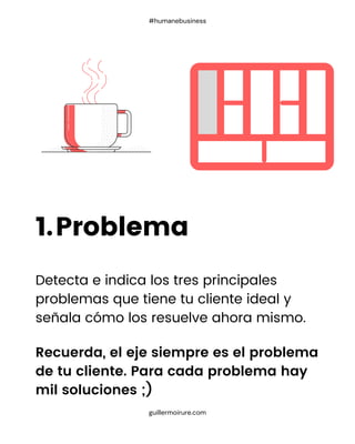 El documento describe cómo utilizar el Lean Model Canvas para visualizar y emprender un modelo de negocio, enfocándose en identificar problemas del cliente y sus soluciones. Se detallan nueve elementos cruciales: problemas, soluciones, métricas, propuesta de valor, ventaja competitiva, canales de difusión, segmentos de clientes, estructura de costes y flujo de ingresos. Se enfatiza la importancia de tomar decisiones basadas en datos y de contar con el apoyo de especialistas para una gestión adecuada del negocio.