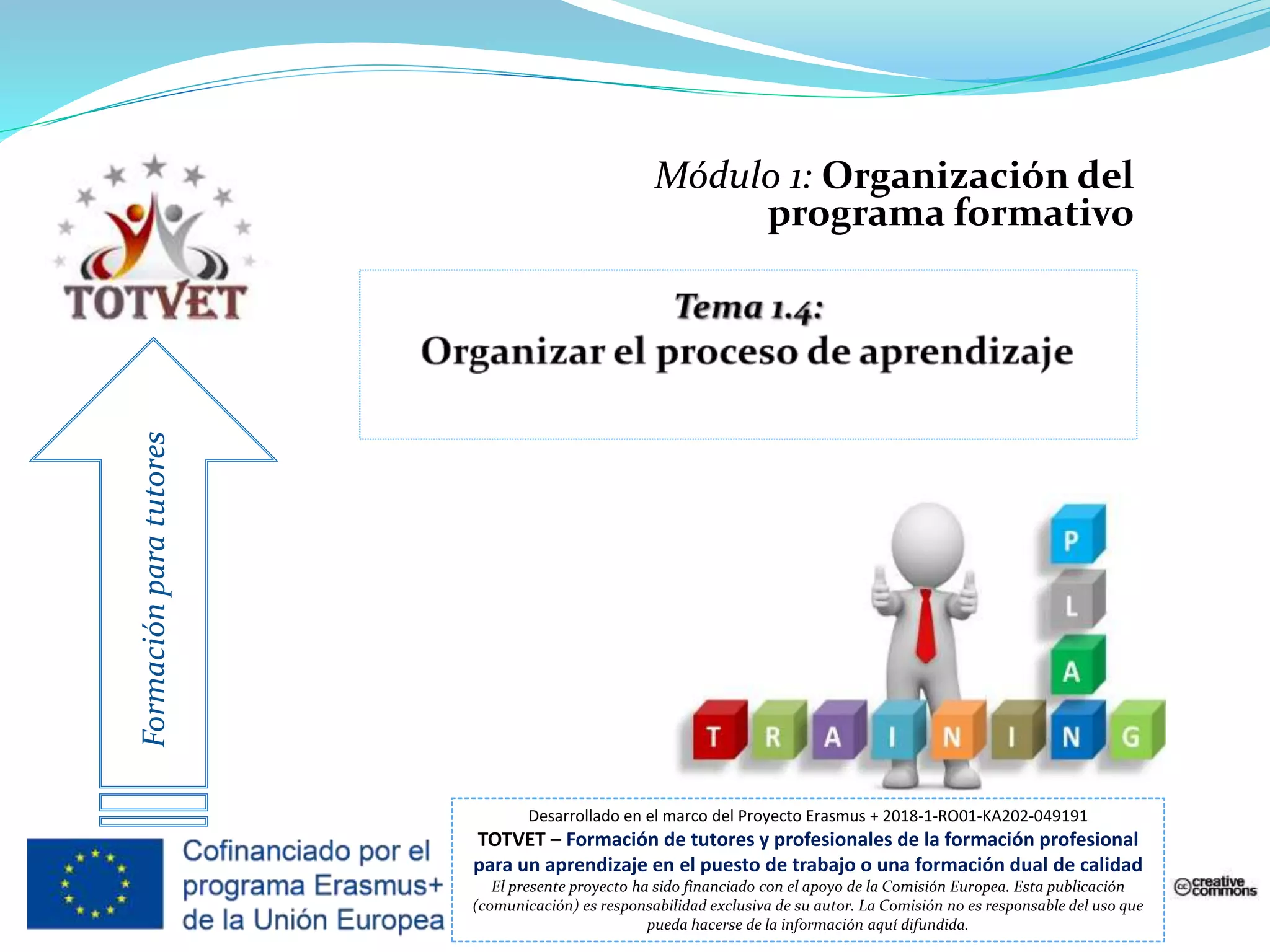 El documento describe la organización del programa de formación de tutores en el marco del proyecto Erasmus+, enfatizando la importancia de la planificación en el proceso de enseñanza-aprendizaje. Se detallan los pasos necesarios para crear un plan de estudios efectivo, así como métodos de evaluación y estrategias de enseñanza centradas en el estudiante. Además, se destaca la necesidad de recopilar retroalimentación continua para ajustar y mejorar el enfoque educativo.
