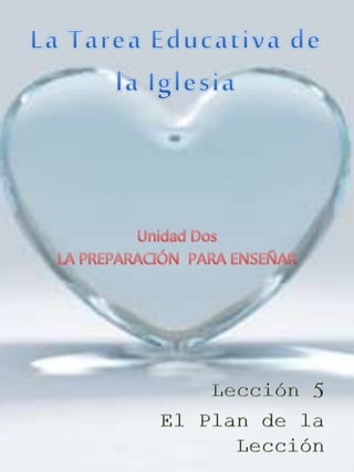 Este documento presenta un modelo de planificación de lecciones que incluye componentes como el título, objetivos, estructura y roles del maestro y estudiantes. Incluye un ejemplo completo de planificación de lección basado en un pasaje bíblico. También proporciona instrucciones para que el lector desarrolle su propio plan de lección sobre la curación del ciego de nacimiento según el modelo provisto.