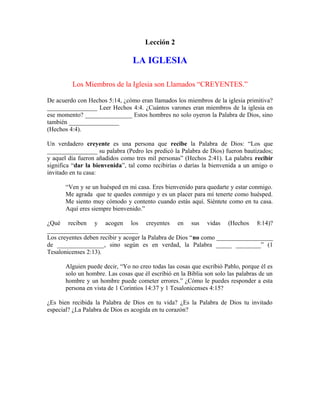 La lección habla sobre la iglesia primitiva y cómo los miembros eran llamados "creyentes". Explica que un verdadero creyente es alguien que recibe la Palabra de Dios con alegría y la acoge en su corazón. Finalmente, contrasta la actitud de los creyentes, quienes reciben la Palabra, con la de los incrédulos, quienes la rechazan.
