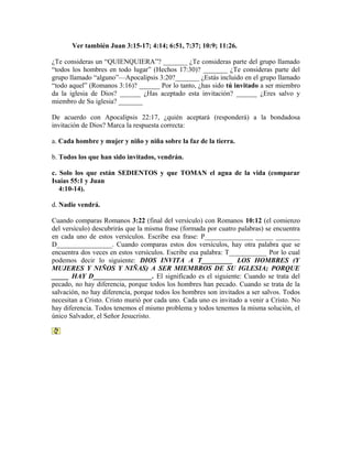 2) Explica que, según Apocalipsis 22:17, aquellos que están sedientos y toman del agua de vida gratuitamente aceptarán la invitación.